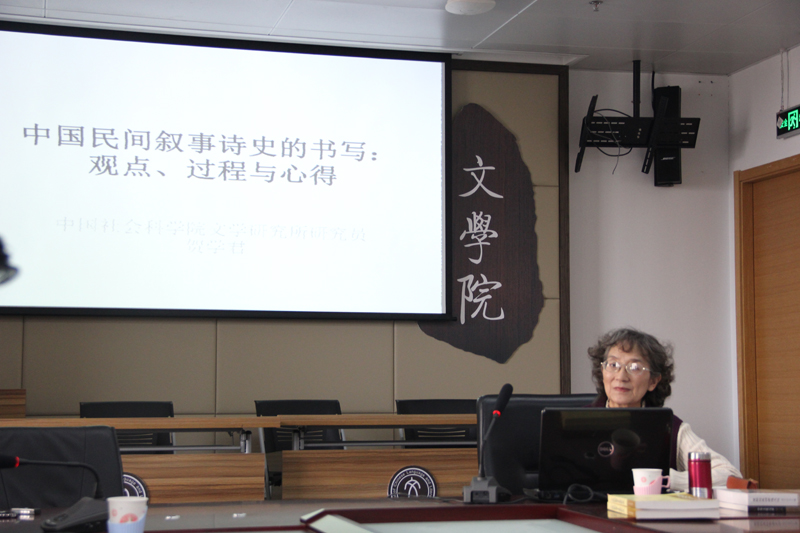 等高校的三十余位师生参与了本次活动,钟敬文先生女儿钟宜教授莅临出席。 本期沙龙的主讲人是中国社会科学院文学研究所贺学君研究员,讲题为“《中国民间叙事诗史》的书写:观点、过程和心得”。沙龙由社科院文学研究所安德明研究员主持,北师大民间文学研究所万建中教授担任评议。 贺学君研究员首先向大家介绍了自己从事叙事诗研究的背景和缘起,特别回顾了钟敬文先生对她的热情和指点。接着,她从故事情节、人物形象、韵文体式、表演语境等角度对《中国民间叙事诗史》中“叙事诗”的界定作出说明,对其与史诗、韵文体神话传说等其他文类的区别作了辨析,并介绍了中国叙事诗的总体特征、发展轨迹、大致分类等。她重点围绕“中国”、“民间叙事诗”、“史”三个关键词回顾了自己的研究历程,讲述了其中遇到的困难和解决的采取的应对办法,向大家分享了自己多年的研究心得。同时,贺老师也坦率地指出自己研究的遗憾和不足。关于《中国民间叙事诗史》的学术价值,她谦逊地用“砖”来形容,希望能为中国民间文学和民俗学研究提供基础性建设,同时“抛砖引玉”,期待更多学者更精深的研究。 万建中教授在评议中指出《中国民间叙事诗史》在叙事诗史研究领域的开创性意义,并结合自己的研究经历,就该书对学术史难题、学术史书写难题的处理把握,及其自觉的学术追求发表了感想。他对贺老师的学术勇气和学术智慧表示钦佩,并号召大家学习贺老师“十年磨一剑”、勤奋耕耘、甘于奉献的治学态度。 随后,在场师生围绕讲题自由讨论。陈泳超、施爱东、萧放、康丽、杨利慧、岳永逸、吕微、安德明等学者先后发言,大家高度评价了贺老师的学术贡献和治学精神,针对该书文类界定、历史分期、作品收录及断代等问题提出各自的看法,还就民间文学史的书写和民间文学基本理论展开对话。贺老师认真聆听,耐心回应,对大家的评价和建议表示感谢。整个沙龙活动持续约三个小时,气氛热烈,讨论深入。下午五时许,活动在掌声中圆满结束(民间文学研究所供稿)。