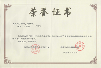 2014年北京大学东方文学暑校北师大小组获集体一等奖