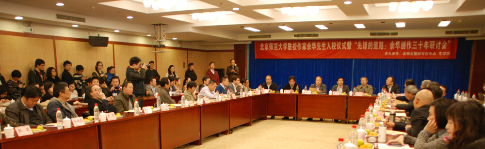 驻校作家余华先生入校仪式暨“先锋的道路:余华创作三十年研讨会”在京师大厦第六会议室举行。