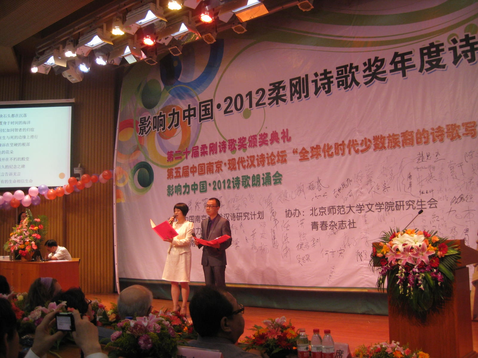 、《青春》杂志社协办。本次诗会主要包括“第二十届柔刚诗歌奖颁奖典礼暨影响力中国•2012诗歌朗诵会”和第五届中国南京•现代汉诗论坛——“全球化时代少数族裔的诗歌写作”两项内容。活动邀请到了来自包括全国各地的130多位著名诗人、学者到场参加,来自漫画网站