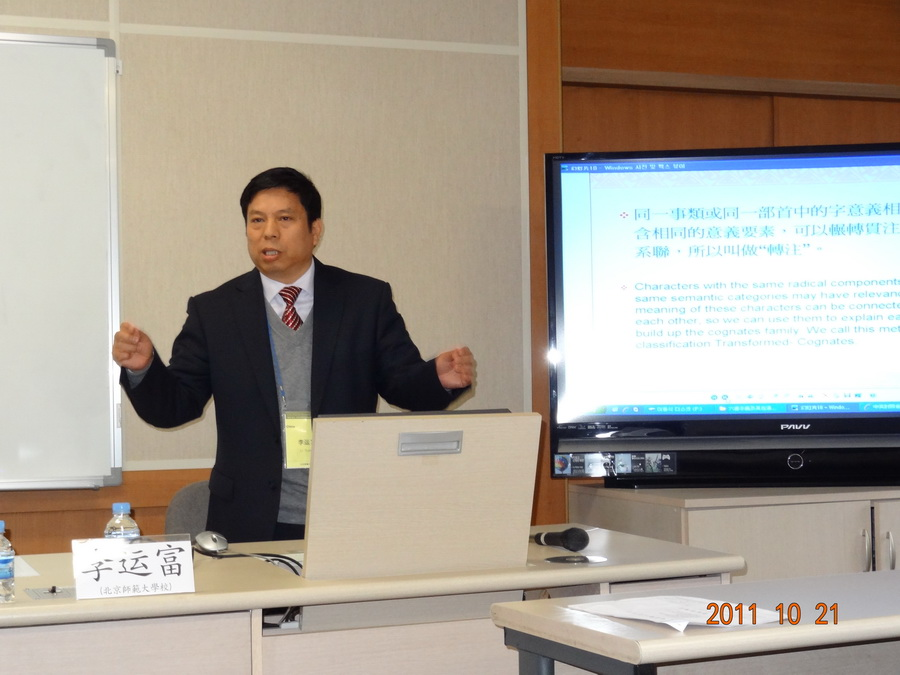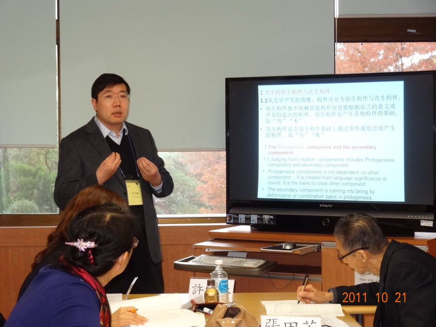 本次会议共收到论文63篇,宣读61篇,涉及汉字基础理论研究、汉字文化圈中各国汉字教学的理论与方法等多个方面。大会共分七组进行讨论,与会学者提出了很多新的学术观点,具有较强的启发性。我中心李运富教授、易敏教授、齐元涛教授、刘丽群博士在分组讨论中分别发表了各自的论文,并与来自中央教育科学研究所、教育部语言文字应用研究所、香港大学、香港中文大学、台湾师范大学、韩国高丽大学、日本筑波大学等多个海内外高校和科研机构的学者进行了认真的交流。会议期间,与会代表还参观了韩国、中国大陆及香港等地汉字教育教材的展示会。