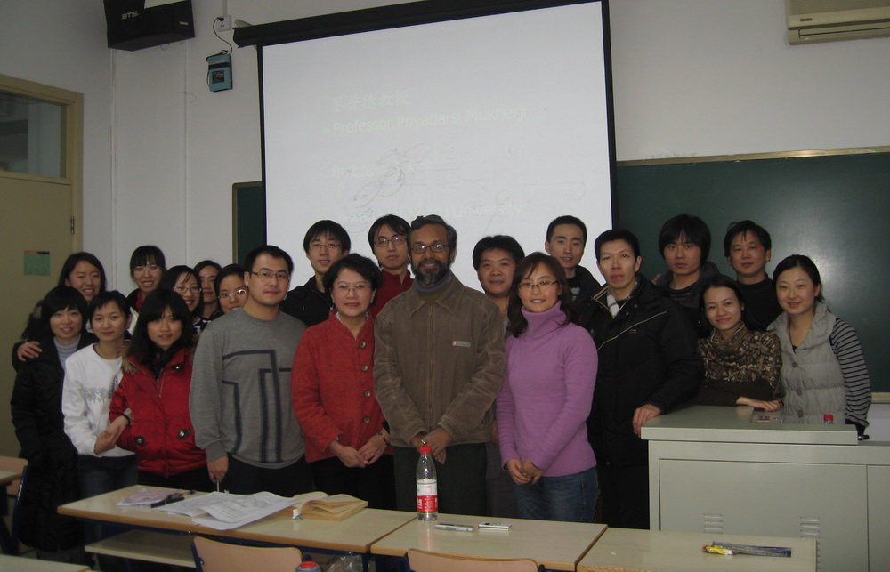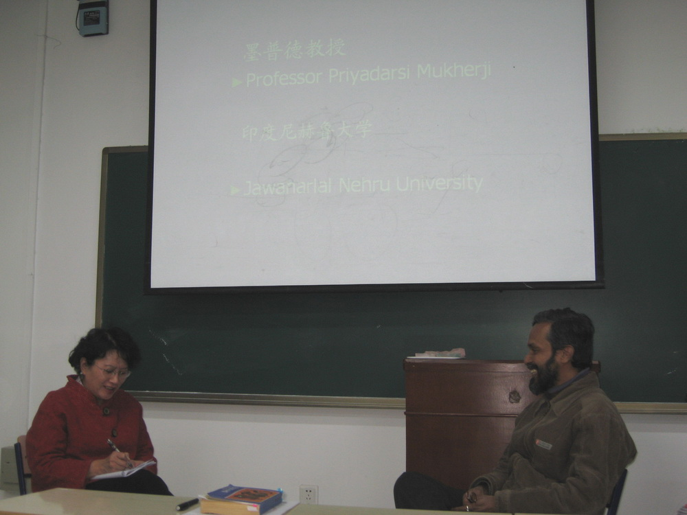 2010年12月15日周三晚6点至9点,印度尼赫鲁大学墨普德教授在北师大民俗学专业上了第一堂“田野访谈”课。上课地点在教二楼112教室,课程名称是“民俗学田野调查的理论与方法”第十二讲“田野访谈法”,主讲教师董晓萍教授,与另一位印度访问学者墨普德教授(Professor Priyadarsi Mukherji),合作讲授了这堂研究生课。