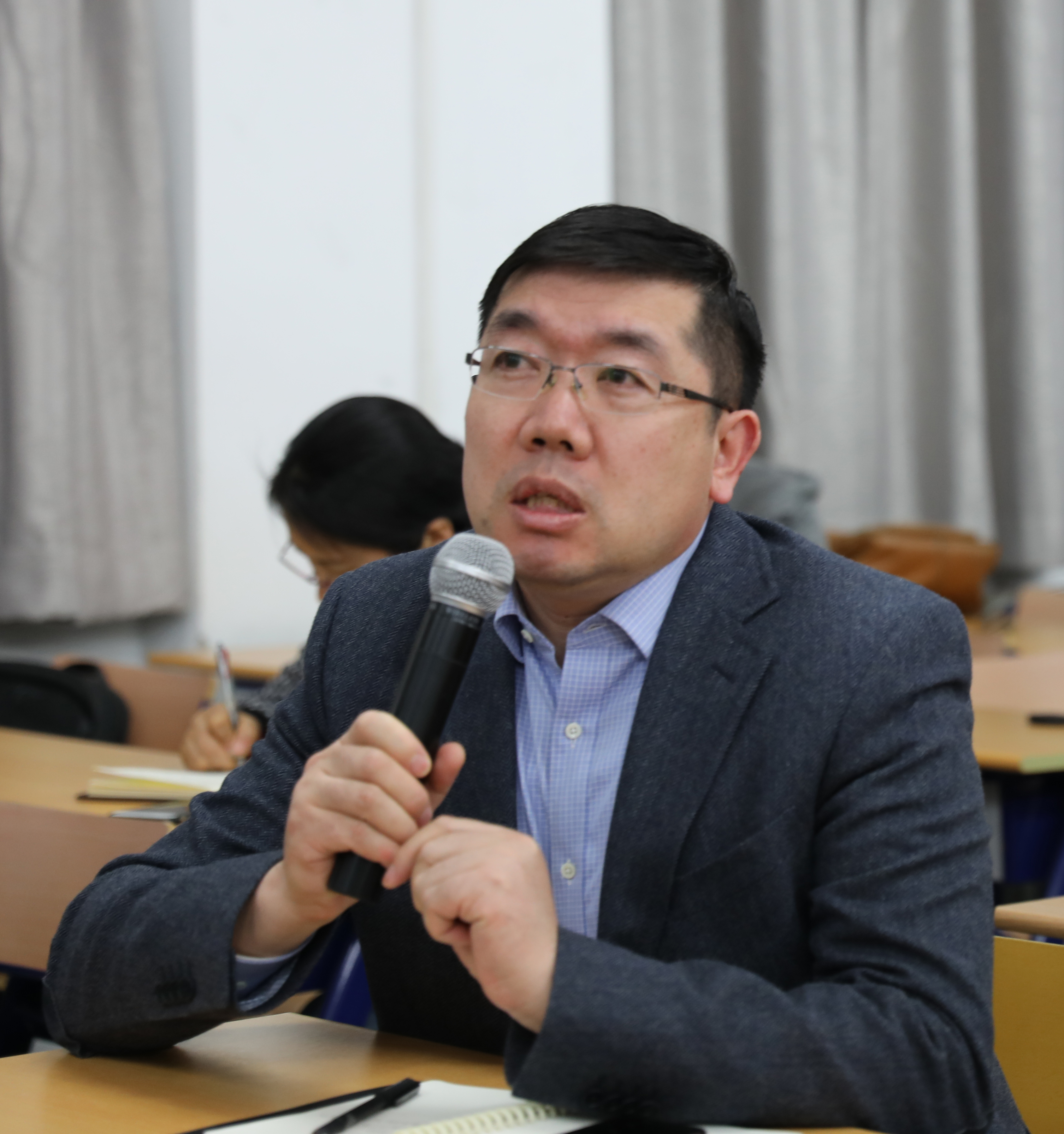 副院长齐元涛教授和北师大跨文化研究院副院长李正荣教授等到会听讲。 热切的目光、认真的思考 汪德迈先生和他的新著《中国教给我们什么》 程正民教授在听讲 汪先生围绕他的最新学术研究著作《中国教给我们什么》(香港中文大学出版社,2019)展开,从语言、社会、存在三个部分,阐述中国文化与中国社会历史的特点及其带给西方世界的启示。 汪德迈先生指出,在语言方面,中国文字是表意文字,中国是世界上唯一至今使用表意文字的国家。世界其他国家在一定发展阶段也有表意文字,但中国的表意文字是思辨的工具,产生概念,出现脱离口语的文言文,文言文还渗透到中国经典文献、官方文化和社会分层结构中。中国文字与文字思维能力的缘起与发展与甲骨文有关,甲骨文的占卜性和仪式应用,帮助中国人形成思维规律。在这个基础上,《说文》的“六书”,创造了接近完整的汉字体系。这种情况在其他国家是没有的。西方文字从口语而来,是表音文字的符号,不是思辨性的。为了适应思辨的功能,西方人需要使用科学和哲学建立一套概念进行思辨活动。中西两者形成对照。 李正荣教授在听讲 在社会研究方面,马克思主义在19世纪指出人类社会历史的发展规律,划分了人类从低级向高级发展的五个社会阶段,即奴隶社会、封建社会、资本主义、社会主义和共产主义,汪德迈先生认为马克思主义是伟大的。但这个规律主要是在研究欧洲社会的基础上提出的。马克思多少也研究了印度,但没有研究亚洲。马克思提出了亚细亚生产方式,很重要,但缺乏中国资料。在这套理论系统中,有些概念,如生产方式,如奴隶制,适合于欧洲社会研究,但未必适合中国古代社会研究。中国古代社会实行井田制,农民有私田,这与西方奴隶制中的奴隶的概念完全不同,也与西方生产方式中的生产方式的概念不同。中国产生了自己的社会分层,那就是“劳力者”和“劳心者”,劳心者治人,劳力者治于人。制度的不同,决定了中西方社会有着本质的差别。中国是“宗法”社会,西方是法治社会,中西两者形成对照。中国的科举制是中国对欧洲的重大影响之一。西方没有科举,直到19世纪,英国印度公司为了招聘人才,才使用了类似“科举”的选拔制度,后来到经济、政治领域也都采取这个办法。 《中国教给我们什么?》的作者汪德迈先生与译者金丝燕教授 三是存在研究。此指哲学、政治学和思想史层面上的“存在”研究。汪德迈先生认为,中国自古有儒学,但没有古代哲学。从严格意义上说,孔子不是思想家,而是政治家。中国的道家有概念,但没有得到充分发展。道家批评儒家,指出儒家违反“自然”,同时批评儒家的基础——语言和文字。老子《道德经》中所谓“道可道,非常道;名可名,非常名”,意思是语言毁坏“无为而治”的“自然”与“道”。《道德经》描绘的理想是无语言、无政治的“小国寡民”。《庄子》对儒家使用语言文字的评论又进一步,庄子将语言分为 “卮言”、“重言”和“寓言”三个层次。后来庄子思想又与佛教结合,形成禅宗。禅宗反过来用庄子的方式解释“有”与“无”,存在与不存在,一个典型的例子是《庄周梦蝶》。庄子的思想是很深刻的。回到开头讲的汉语与汉字上说,中国的文字功不可没,促进了中国人思维的发展,推动了中国社会文化的发展。但是,中国文字及其表意系统也带来了束缚的力量,对此也应该反思和批评,儒释道都可以反思批评,正所谓要辩证地看待有无。 董晓萍教授在听讲 汪德迈先生的讲座极为精彩,引起现场一阵阵热烈的掌声。董晓萍教授邀请法国阿尔多瓦大学金丝燕教授做简要讲评。金教授是汪德迈《中国教给我们什么》的译者,也是汪德迈学说的研究者,对汪先生的著作有独到理解。金教授指出,汪德迈教授用简单的语言与清晰地逻辑,从语言、社会、存在三个方面,对中国文化的特征进行论述。在语言层面,中国的语言是举世无双的非自然语言,不具有普通语言的语义与语音是双重组合。中国在创造语言的时候没有考虑语音的因素。在社会层面,欧洲汉学家与历史学家,过度套用西方的理论观点,而没有重视中国的历史的独特性。中国的历史学家更应当关注到这一独特性。在存在层面,从庄子到禅宗,展现出中国对语言的认识,主要分为“卮言”、“重言”、“寓言”,这是中国语言的特点。法国西方的当代艺术所提出的抽象性,在中国古代已经存在。 金丝燕教授讲评 讲座结束后,进入讨论环节,师生提问,汪德迈先生回应。齐元涛教授的问题是,如何看待西方语言学界对于语言看法的差异性?汪德迈先生回应说,西方重视口语,西方人对语言的批评主要针对口语概念的缺乏。在宗教层面,西方人与印度人都认为,口语创造世界。中国重视文字与书写。中国文字本身承载很多概念,承载着中国人的思维方式。在国际化的过程中,人们能够了解和研究其他的文化。但我们也要警惕,国际化带来同质化。汪德迈先生也谈到了艺术的语言在某种意义上是“反语言”的表达。语言是将物品转化为概念,而艺术是将概念转化为实物。中国传统绘画从书法而来,也从文字而来。这是中国绘画与西方艺术绘画的不同。现在中国某些艺术活动模仿西方艺术模式,这是有意思的现象,但中国艺术不应该单纯模仿西方,丢掉自己的东西,而是要在自己的历史中