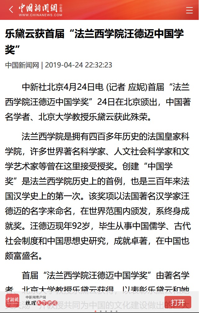 [转载]乐黛云获首届“法兰西学院汪德迈中国学奖”