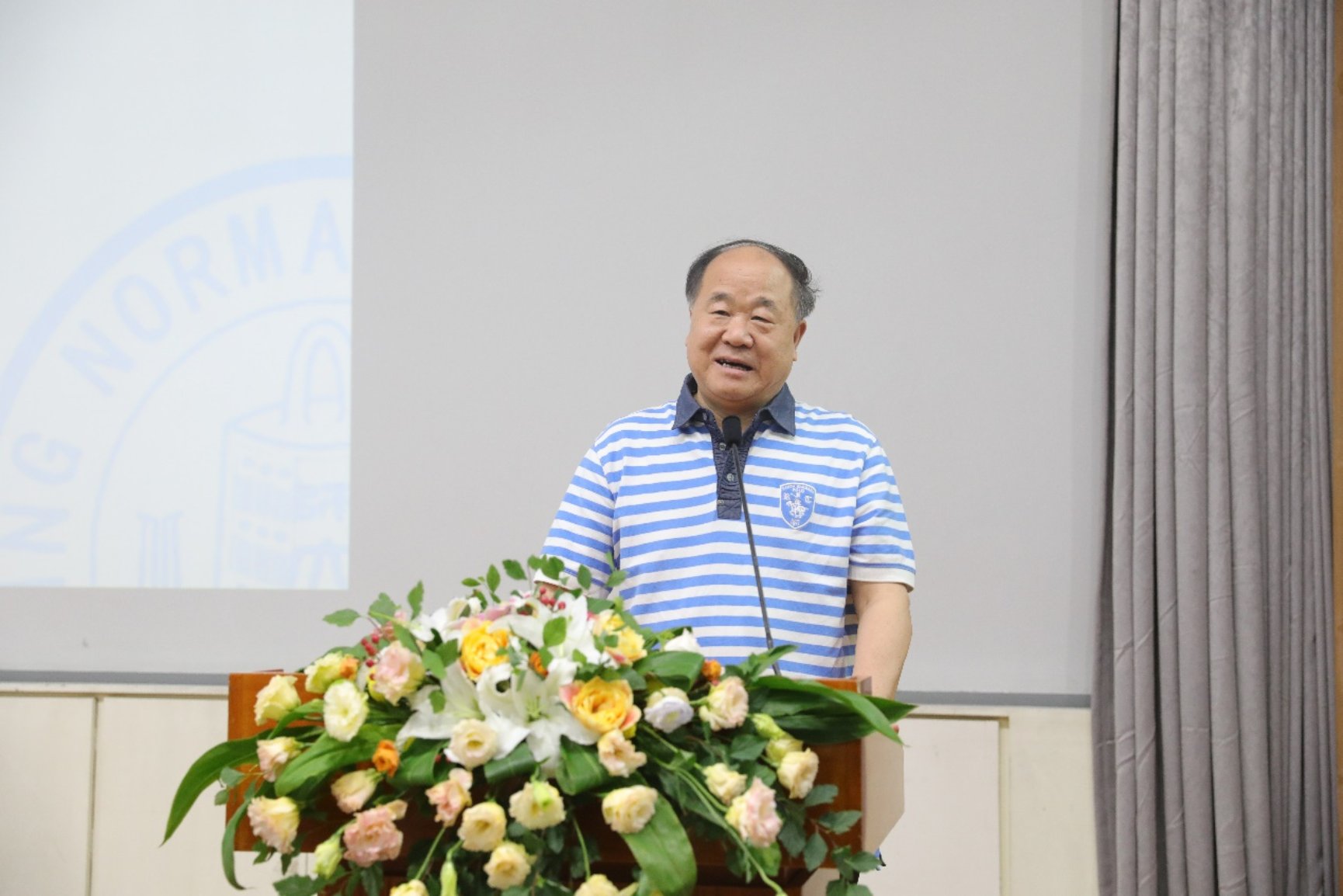 的时光是青春中最美好的日子,勉励众学子珍惜时光、付出努力,不负岁月! 莫言作为在校教师代表发言。他围绕“汉语”、“创作”、“阅读”展开。首先介绍了中国语言的微妙之处,并提出同学们进入大学后可慢慢掌握汉语的深层奥秘,最终成为卓越的汉语使用者和创造者。莫言教授指出,系统的教育和广泛的阅读等学习对于汉语使用与创作具有重要作用。他说,在当今百年未有之大变局的时代之下,同学们应有足够的定力、保持冷静的心态,找到大学正确的学习方法,充分利用大一宝贵时间、为今后学习奠定良好的基础,期望同学们在大量学习阅读之后对汉语现状与发展做出自己思考,大学期间在完成课业的前提下,可以积累一些文学创作的经验。最后,莫言教授建议同学们把握青春时光,领略汉语之美、为汉语发展增砖添瓦,他表达了对同学们的殷切期望与美好祝愿。 在校生代表、2018级古典文献学专业博士生邵小森发言,他从自己九年的求学经历出发,与新生分享了自己温暖的师大记忆。他特别分享了自己对学术的魅力、学术的传承、跨学科研究等方面的理解。最后他以诗人聂绀弩的诗句“二十岁天怕我”与大家共勉,鼓励诸位新生们继承师大传统,让传统永续,让光芒永恒,表达了对新生的深切祝愿。 留学生新生代表、马来西亚留学生钟敏怡发言。她表达了来到北师大漫画网站