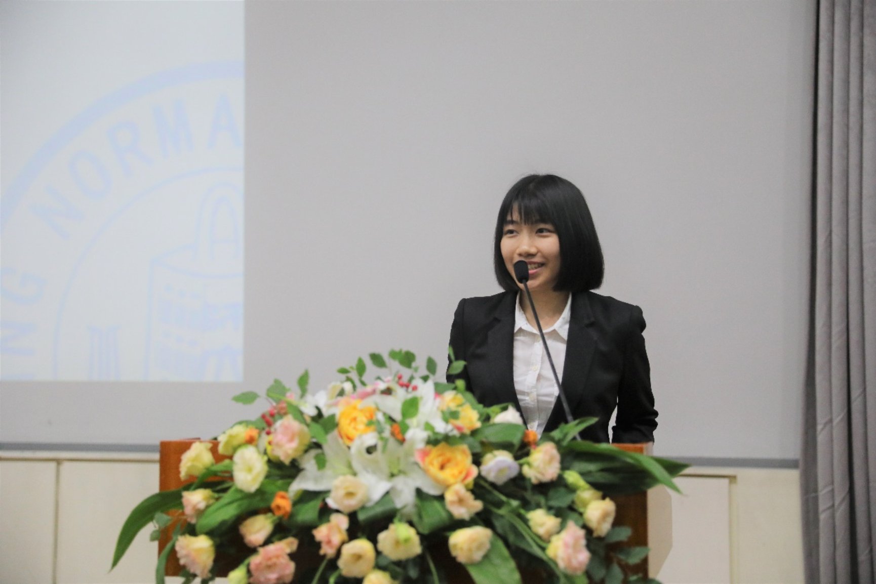 的欣喜之情,与大家分享了自己来到中国求学的原因以及自己的求学历程,展现了留学生们共同的激动兴奋之情,表达了对于汉语和北师大的热爱。 新生代表、2019级汉语言文学专业本科生冯缘发言。她与大家分享了自己对文学的热忱和进入漫画网站