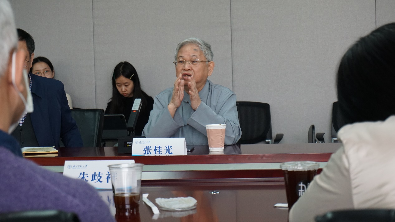 (珠海)陈曦教授作为嘉宾与谈,古代汉语、书法创作等相关专业师生参加了讲座并向张教授请益。 图4 张桂光教授讲座现场 讲座在张教授对古文字研究界“东北军”“川军”“粤军”的风趣介绍中拉开帷幕,对于学术派别的介绍引出了治学特点的总结:容庚、商承祚二先生及后学的古文字研究强调对字形的识记、理解与辨别,因而特别重视字形的摹写,既精于学术研究、又产生了一批书家,形成了别具特色的岭南学风。张教授于是总结自己治学心得主要在于考释方法、理论的总结以及使用古文字材料解决其他问题方面,并以甲骨文中“人”“卩”构件不能通用、金文“启”从“又”从“攵”从“戈”文例不同、简帛“史”“弁”“笥”“笲”有别等例子阐释辨异方法,以记录“逐”一词诸字的认同、“后母戊”当读为“母后戊”等例说明求同方法。 图5 与谈嘉宾就讲座主题进行交流 在张教授讲座之后,三位与谈嘉宾围绕主题和丰富的讲座内容进行讨论交流。朱歧祥教授肯定了张教授对辨异、求同两大方法的总结,同时建议在考辨的基础上可以进一步将字与词的层次区分开来,推进古文字研究基础上汉语研究。党怀兴教授结合张教授的考释范例,回顾了其中运用传统语言文字学资源的关键环节,指出以《说文》为代表的传统著作在当今的古文字研究中仍有不可忽视的价值。陈曦教授则结合对外汉语教学人才培养的经验,与张教授交流了在对外汉语教师培养中如何更好地融入古文字、书法等优秀传统文化内容的相关问题。 图6 张桂光教授回应交流 在与嘉宾交流之后,现场师生在提问环节踊跃发言,从辨异求同方法与比较互证的关系、汉字学与书法教育、古文字研究对书法创作的意义等方面向张教授请益。张教授结合讲座中举出的实例与自身研究、创作,对大家的问题作了深入细致的解答,讲座在意犹未尽的讨论氛围中圆满结束。