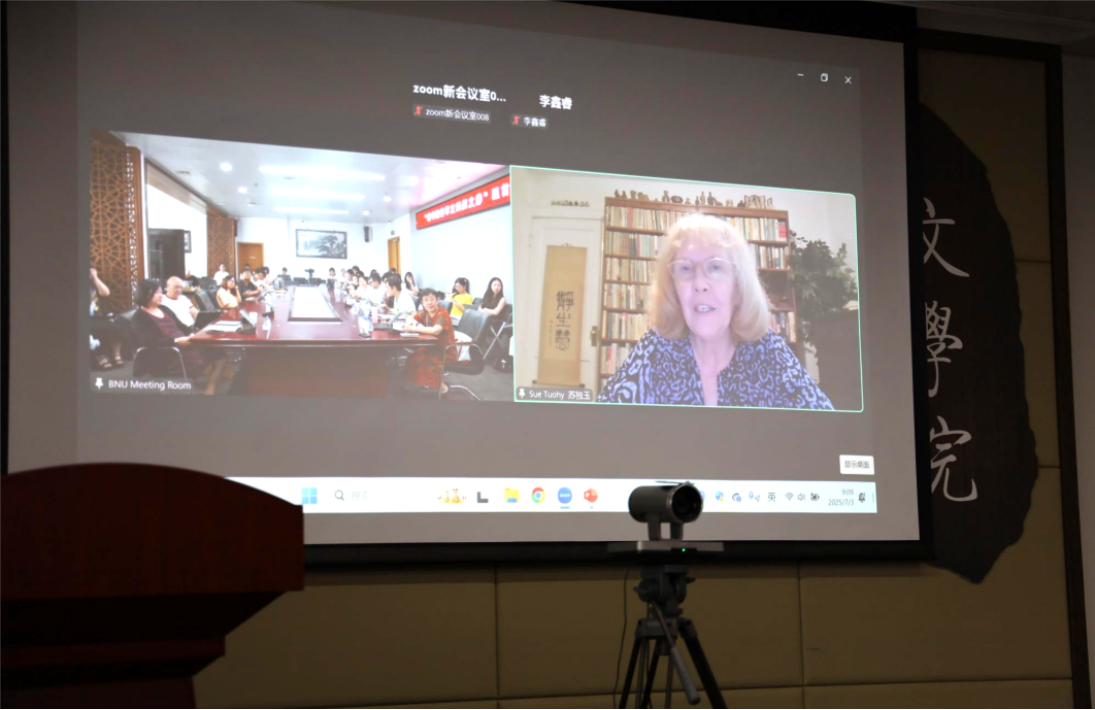 陈佳慧同学发言 山西大学陈千叶同学发言 2025年全国优秀大学生夏令营结业仪式合影 与此同时,敬文暑校的学术探索仍在深入。7月3日上午,美国印第安纳大学荣休高级讲师苏独玉(Sue Tuohy)主讲了《民歌研究的基本概念与方法:条件和媒介变化中的重复模式》,彭牧教授主持。苏老师剖析了中国西北“花儿”歌曲在长时段传播和再现中的重复模式,指出民歌“重复”是文化与政治环境选择、固化并赋予意义的过程。 美国印第安纳大学荣休高级讲师苏独玉(Sue Tuohy) 漫画网站