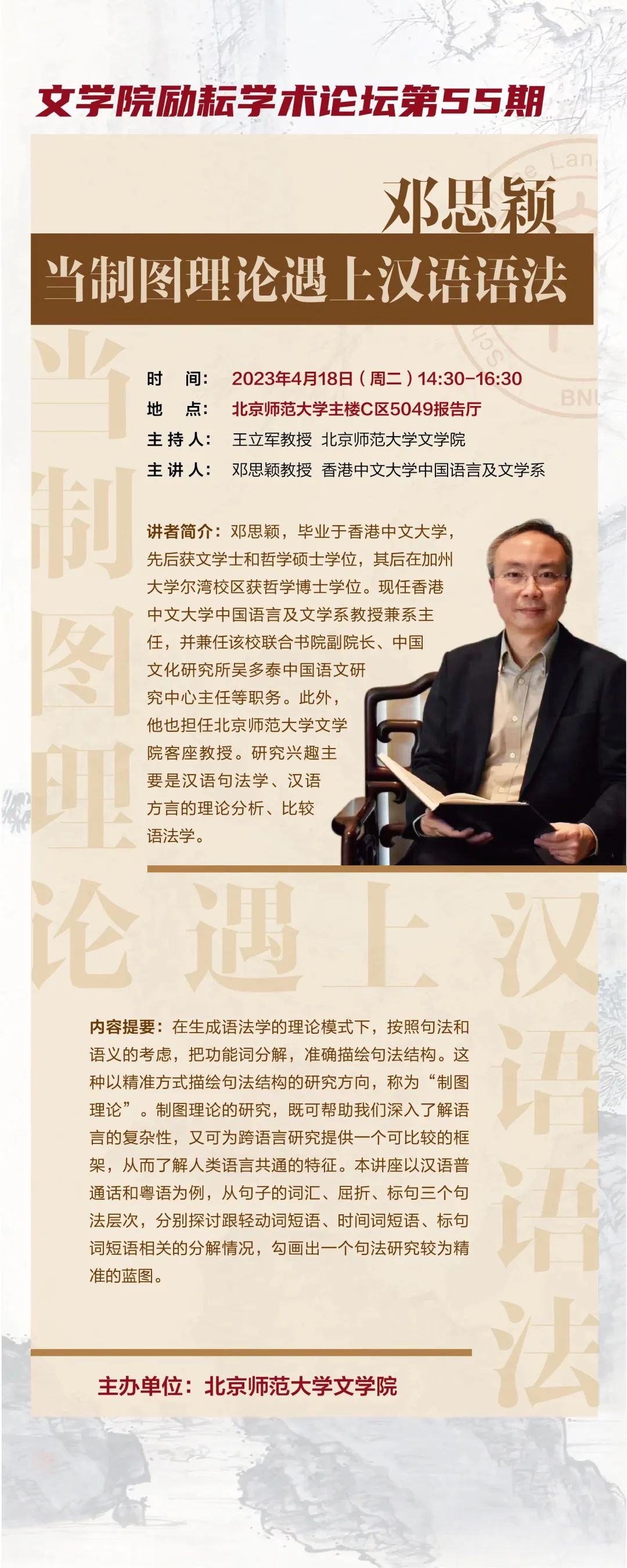 [讲座预告]邓思颖:当制图理论遇上汉语语法