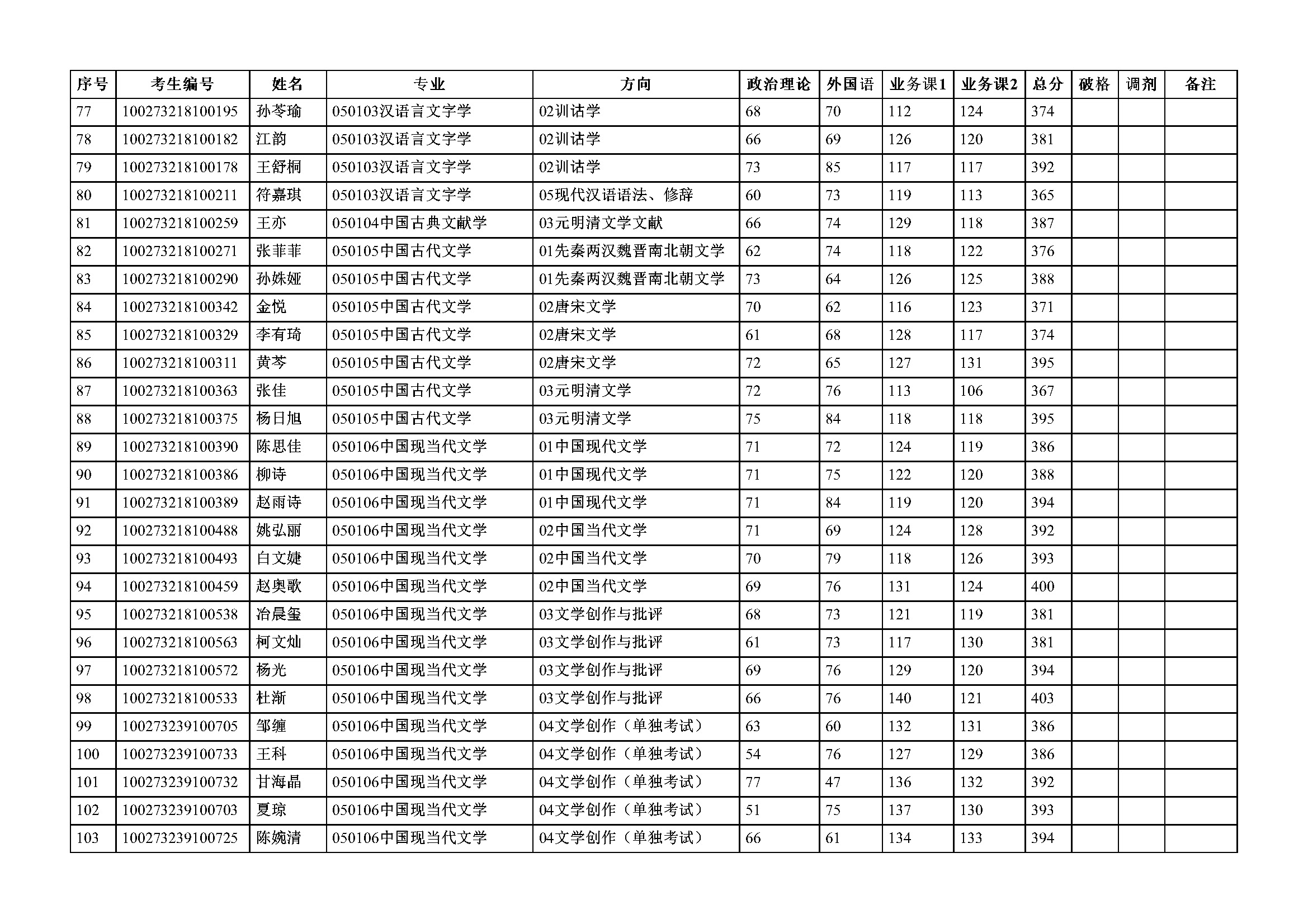 2023年漫画网站 硕士研究生招生复试名单公示(不含调剂)